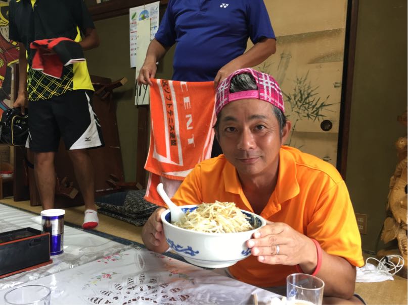 朝ごはんの時、味噌汁運んだら腰がやっちゃいました⤵︎  2日目はほとんどテニス出来なかったけど…お約束のもやしそば大盛り麺固め  からのガリガリ君(笑)  車中で打ち上げして合宿終了。 ほとんどテニスの記憶ない合宿でした。また来年!