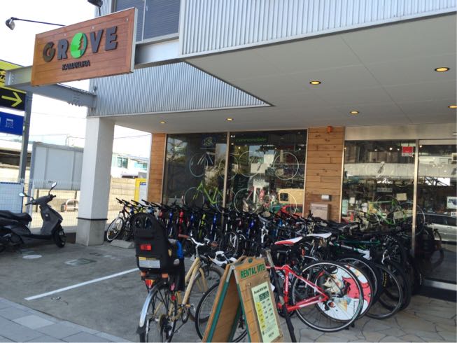 由比ヶ浜手前に気になる自転車屋さんに立ち寄り初のサドル乗っけ駐車^ ^