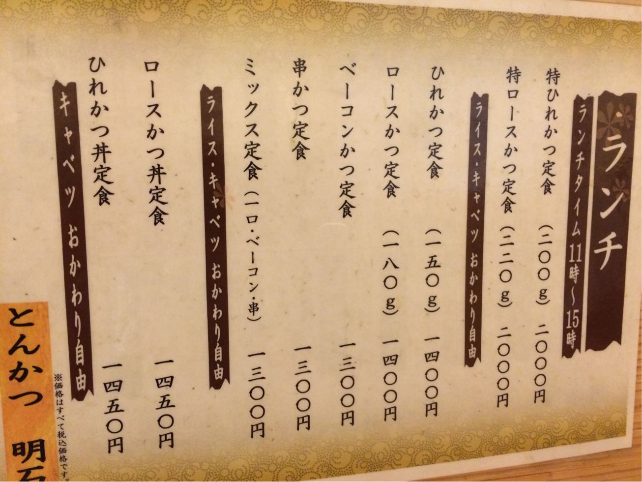 ディープなビルでのランチ!  飲食店、チケットショップ、洋品店、パチンコ、ゲームセンター、マッサージ屋などいわゆる商店街を1つのビルに凝縮したビル。  ここでは以前王様炒飯を食べた。  2度目だから初心者ではない。 但し初級者ではある。  このビルは1FとB1がメインだと思う。 初級者を抜け出すにはやはり上に上がらなくてはならない(笑)    もう頭はとんかつでいっぱい! とんかつ明石…人気店なのか? ひとまず並んでみることに…   ほほ~っ このキャベツを食べてメインを待てと…  お代わり自由ってことだね。 素晴らしい^ ^  そしてメインの登場!  まっ何処にでもある感じはするけど美味しかったです。 なんかもう少し肉の甘みを感じたかったなーと思いつつご馳走様でした。 築地〜かなり時間をかけたランチ終了! 星★☆☆ リピート度 ★☆☆