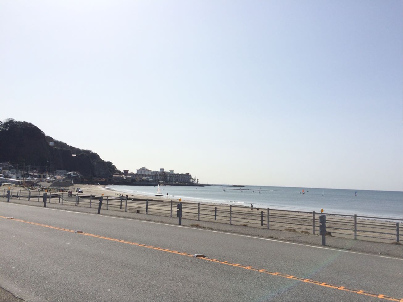 今日は逗子方面へ…初ライド。  サーフィンの辻堂方面と違ってこちら逗子はウインドサーフィンが主流なのは昔から変わってない。  想像以上にこちらはアップダウンあるのね~車じゃ感じなかった…こりゃ〜キツくないけど後から効いて来そうな感じだな。  懐かしい所到着。 逗子マリーナ!  昔の鉄板ドライブコース(笑)  見えますか〜! 大海原の先に江ノ島^ ^の先に富士山。  そしてちょっと早いけどポタリングランチ!