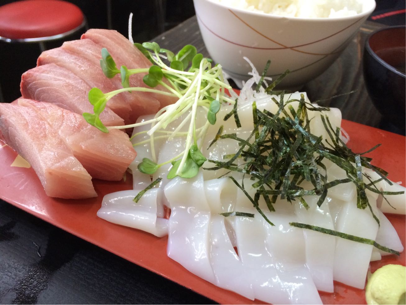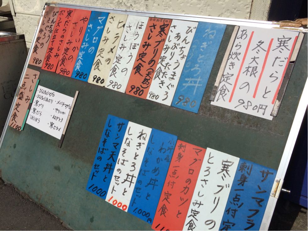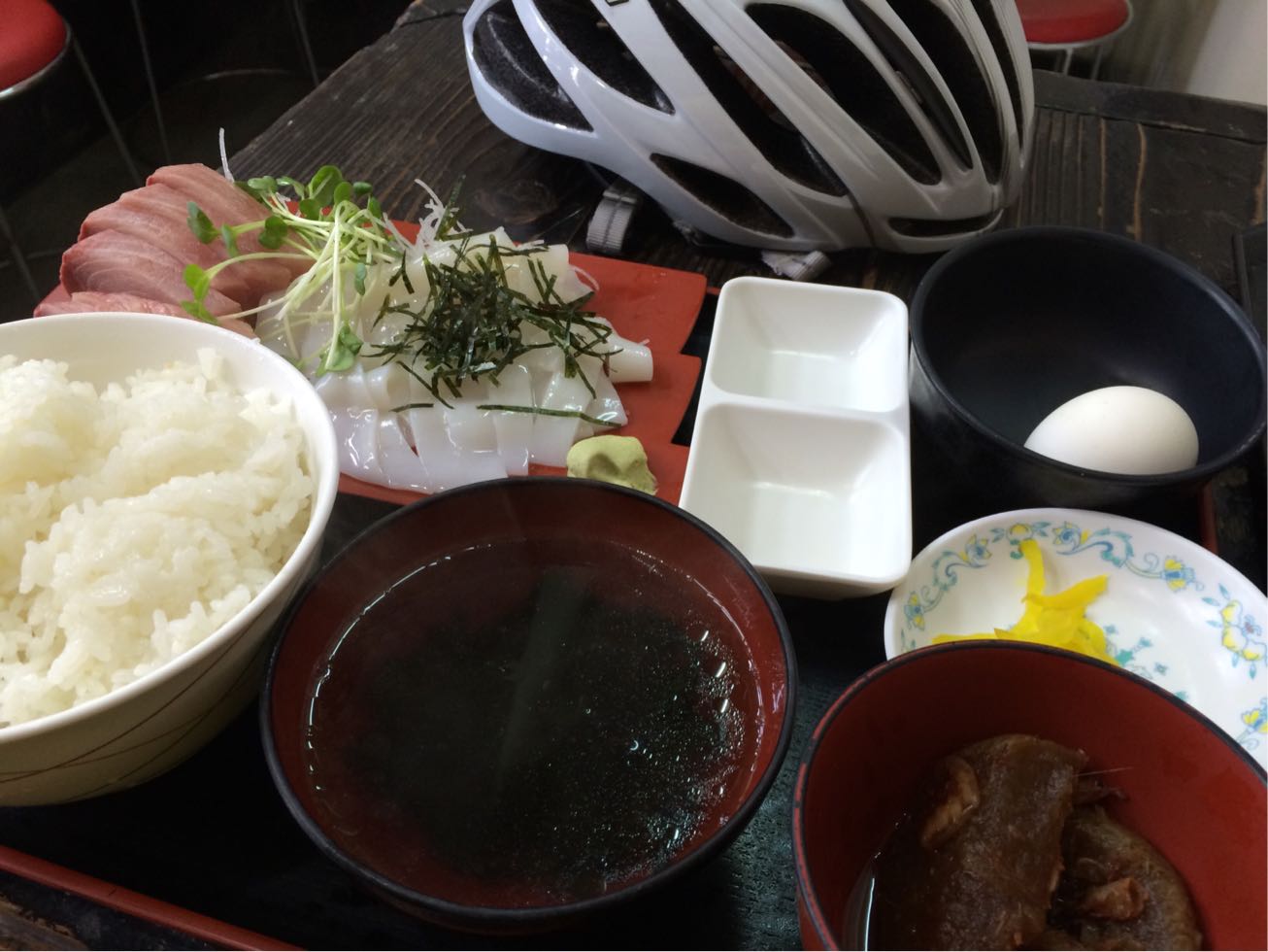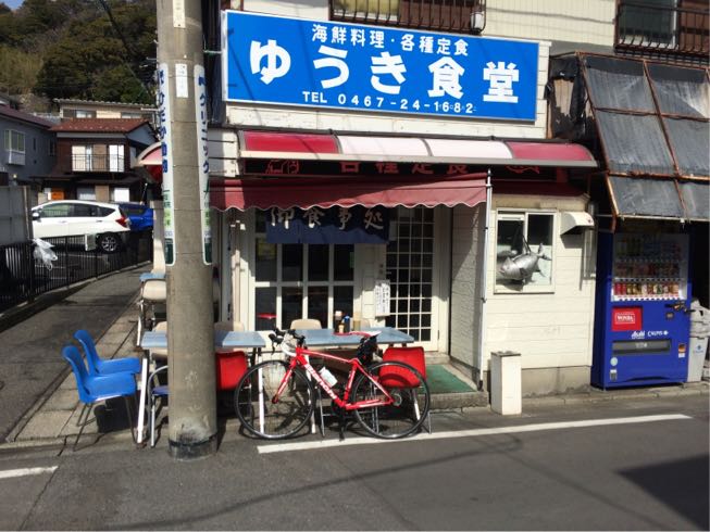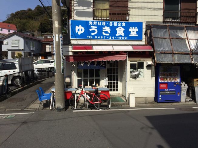 ゆうき食堂。 開店前だったからチャリと一緒に…  大丈夫です。 待ちます。 本日臨時休業に比べたら^ ^  刺身にするか⁈ 確かネットにはマグロカツもオススメとか…  開店時間前に開けてくれました。 システム的には入ってからオーダーして空いてる席に座る様です。 初心者にはいささか戸惑う流れです。  ましてや… 本日最初のお客さんは俺だし…  本日のポタリングランチ@ゆうき食堂さん お刺身2点盛り定食(寒ブリ、するめいか)  量も多く食べ応え有り! 新鮮でもちろん美味い! 星★☆☆ リピート度 ★★★ って感じかな(笑)   驚くのは気付いたらお客さんのほとんどがチャリダーばかり。 たぶん本格的な方々ばかりで俺の様な新人チャリダーましてや1人客では何だか迷い込んだ猫状態(笑)  でもまた来よう! 本日第2の目標地点をクリア! さ〜これからどちらに向かうかな⁈ PR