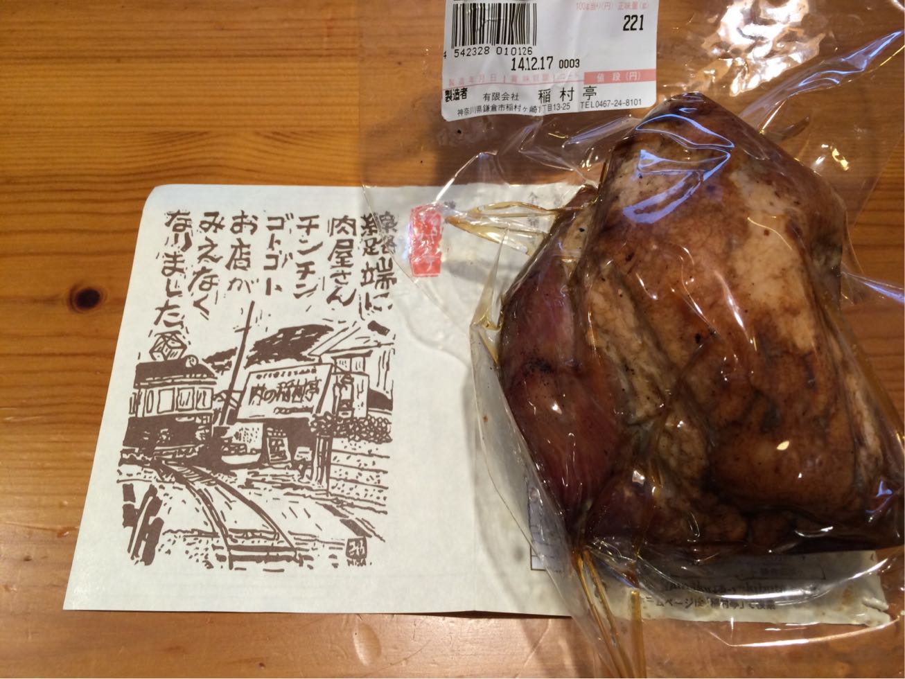 極楽寺から稲村ヶ崎に向かう江ノ電沿いにある焼豚屋さん。  以前から気になっていたんです。 チャリだから簡単に止めらるのでちょっと立ち寄り!  寄ったら買わない訳にはいかないよね〜^ ^ 一本1000円ぐらいの焼豚を購入。  炭火の香りがする美味しい焼豚でした! お店のお母さんに朝から自転車?頑張ってねと元気付けられてお店を後にしました。 また立ち寄ります^ ^