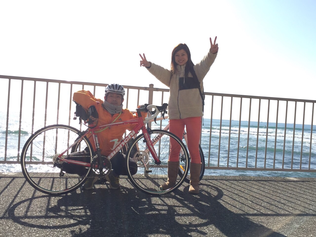 二週続けての湘南ライドへ出発! ただし本日は嫁さんも参加です^ ^ いきなりロングライドは厳しいだろうから、車に積んで我が家をスタート!  magnum的には今後、輪行して色々な所に行ってみたいのでチャリの分解の練習でもあります。 本日は前輪外しただけだけど(笑)  北鎌倉駅~鶴ヶ丘八幡宮。 天気も良好o(^_^)o  こりゃ海岸線での景色もちょー期待  由比ヶ浜〜稲村ヶ崎   そりゃ~ハマりますよ。 この気持ち良さ!  そしてこの絶景^ ^  稲村ヶ崎〜七里ガ浜  そして江ノ島へ  続きます(笑)