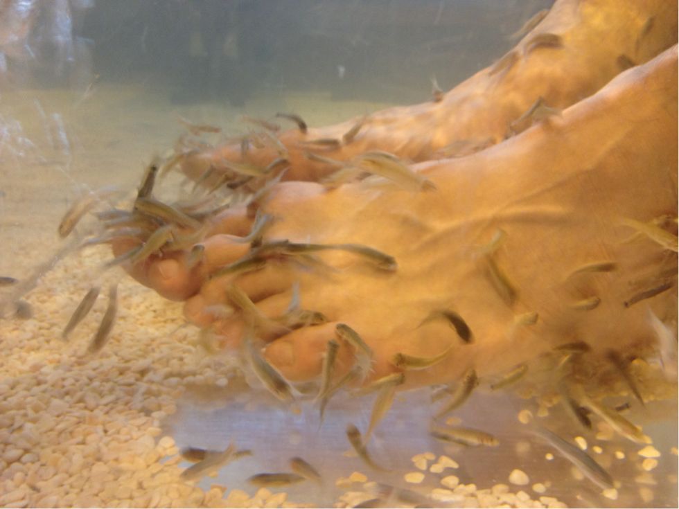 入浴後、残る邪気ならぬ角質を魚に喰わせ更に清めるチームパックマンズ!