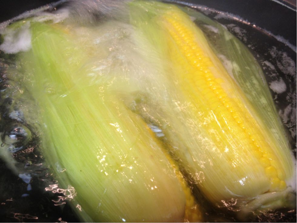 帰って来ておやつにとうもろこし!
