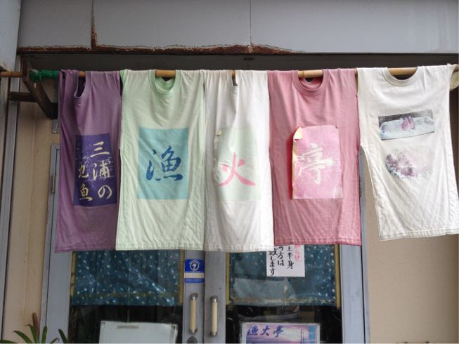海岸沿いらしくTシャツののれんがお出迎え(笑)