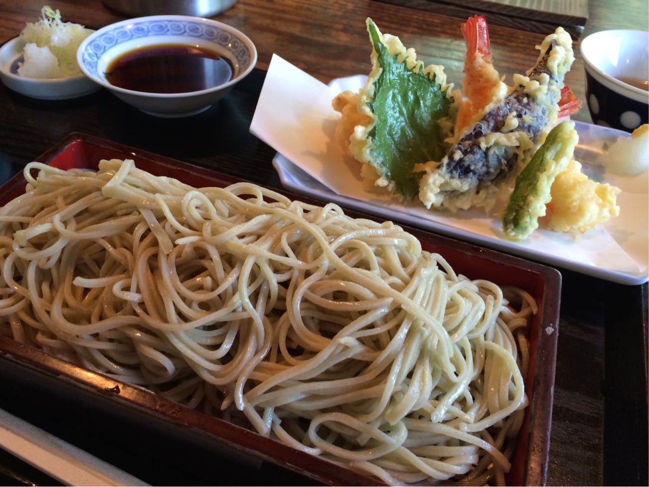 別に遭難してる訳でもトレッキングしてる訳でもありません! この山道の先に…  蕎麦屋があるんです^ ^  少し腰のある蕎麦でした。 次回は十割蕎麦にしてみるかな!  出来ればこの時期なら天ぷらは山菜がよかったな〜 でも海老2本あるから少し許す^ ^ 星★☆☆