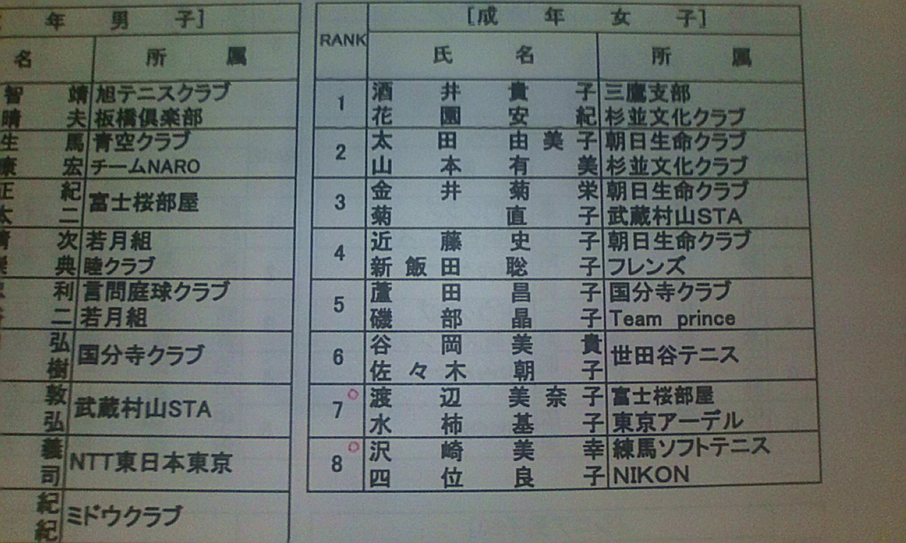 成年女子でMinaちゃんが7位そして練習会員のハム太郎が8位とランキング入り!