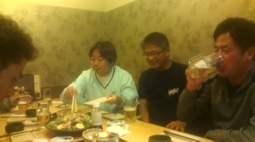 magnumも仕事の合間をぬっていつもの串揚げ屋さんに少しだけ顔を出して来ました! (いつものって言っても僕は2回目ですけど・・) 入り口から店主がこちらを覗いてます。 僕は途中参加だったんだけど、お店の中はお客さんで一杯!! 何故か福島さんまでいました! 今まで3回対戦していて、偶然かなG1-3から3回とも逆転勝ちしているmagnumに相当リベンジしたい様で悔しがっていました。 レインボー・ジュンの様にうまく写真は撮れなかったけど、やっぱり味は最高でした!! 閉店間際には店主も顔を出してくれて・・ 僕は途中で帰りましたが、その後ちゃんつね御一行は店を変えて飲み続けた様ですよ! 相変わらずちゃんつねは・・ 声がデカイ! すぐにペースに引き込まれてしまいます。。 少し風が強かったけど晴天の中、今年も横浜オープン選手権大会に参戦してきました!