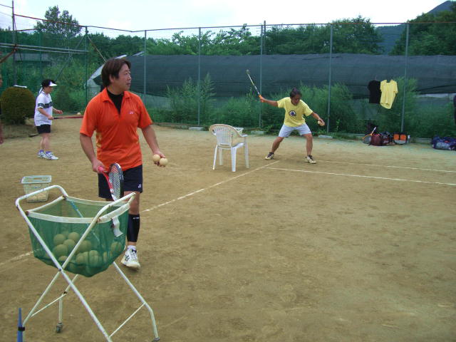そんなこんなでヘタレいやまだ若武者と一緒に10時過ぎにジャングルに到着すると、コートではヨッシー率いるジュニア達が練習しているではありませんか!