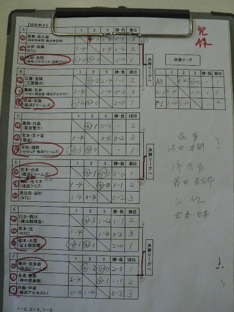 magnumの地元『横浜オープン選手権大会』があり参加して来ました! 春の市民大会はバズーカと組んで見事優勝のmagnumは今回“ビールおじさん”との初めてのペアリングで望みましたぞ! もちろん地元優勝狙い!そして黒帯退治!! 午前中は天気も良く、黒帯様はレアTシャツの仕分けをしてました。なかなかマメな男である。と関心していたら自分のサインも書いていた・・・(自分の宣伝も忘れないそして自称全日本入り!) こんな部分も実力以外で“黒帯”の由来でもあるのだ(笑) さて前座はこれまでにして・・ ここ最近イマイチ盛り上がりに欠けていた(エントリー数)ですが、今回はエントリー数も多く盛り上がりました! そんな中こんなエントリー者も・・ なんで浜ちゃん?それも本○さんを従えて・・・??? よくよく聞いてみるとネットで発見そしてネットで申し込みしてたらしい・・ ドリームズからは成○さん・殿ペアも出場!富士桜関連からはペット・おやびんペアが参戦! 結果は・・ 成年の部 優勝 浜ちゃん・本○さん 準優勝 magnum・ビールおじさん 3位 黒帯・・ magnumは優勝は浜ちゃんのサービスに脅かされ準優勝でしたが、黒帯をG4-0で退治したのは収穫でした。 決勝トーナメント初戦ではペット・おやびんペアとの対戦もあり何とかG4-3で勝利。。ここまで来て途中で身内と当たるのも残念でしたが・・ペットは祟り神になり“もののけ”になってました(笑) このメンバーと対戦できるのはうれしいけど、レベル的にはmagnumまだまだ1ランク・2ランク下にいるのが良くわかる。まだまだ精進しなくてはなりませんぬ。 組んでもらったビールおじさん!今回はありがとうございました!! また宜しくお願いします。。 もちろん浜ちゃん・本○さんの祝勝会は中華街でこの後行いました。皆さんまた来週松戸で会いましょう!! magnumは黒帯桃太郎の家来のサルとして参戦いたします。 11月9日…殿に誘われて、馬刺オヤジの地元神奈川県の“綾瀬市”に行って来ました。