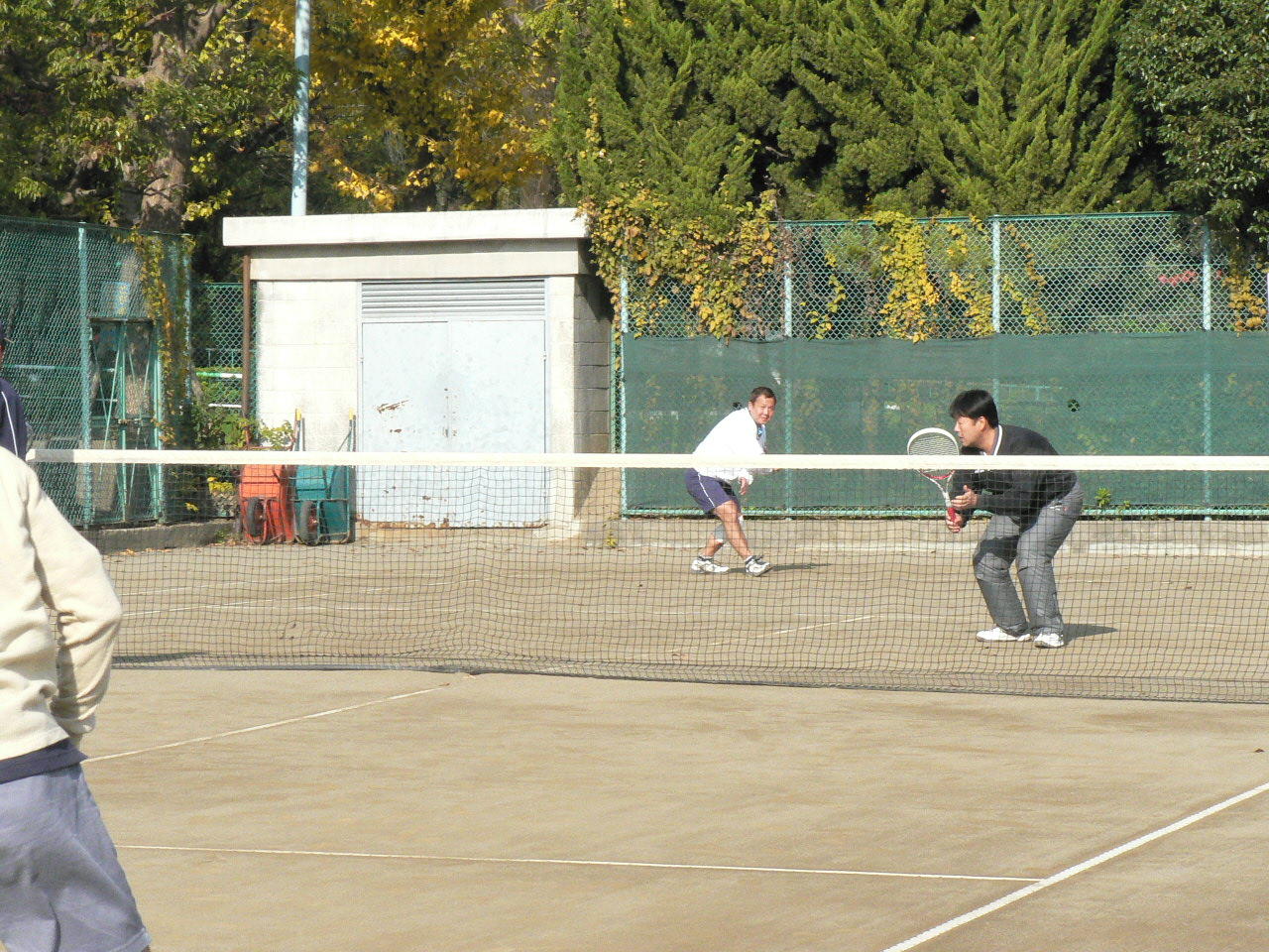 仕事の帰り道・・ 我が母校(大学)の近所を走ったので、期待せずちょっと覗いてみた。 僕の時代は関東リーグでも下位クラスに居たんだけど最近では最高2部まで昇格していた我が母校! 今秋のリーグ戦で4部に降格してしまったみたい。 時代は変わって行くんだな~。 なんせ僕らの時代は河川敷のコートで昼休みにローラーをかけてたのに、今ではオムニコートにナイター設備付き ![]() ![]() 遠くから学生時代を思い出しながら練習風景を眺めていたら旧友に会いたくなってきた。 たぶんみんなテニスなんてやってないんだろうな~? 確かに17年ぐらい前に僕もここで当たり前の様にテニスをしていた。過去の自分を映像と重ねながら現役の人達には当たり前にテニスが出来る環境に感謝をしてやって貰いたいと・・ 密かに『おまえ等にはまだ負けないよっ!』と呟きながらその地を後にし帰路につくmagnumでした! この日は会社の忘年会でして… 営業先から少し早く戻れたのでおやびんと「たけちゃん」で軽く一杯! 30分位だったけど美味でございました(^^ゞ この後知り合いが多数行ってるとは…( ̄□ ̄;)!! 知り合いは・・http://j001437.exblog.jp/6642743/ ○野さんとは一度飲んでみたいな~(笑) 延び延びになっていた東京選手権が今日枯れ葉舞い散る中やっと行われました!